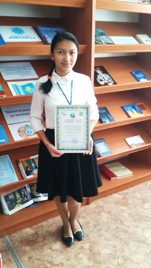Алғыс хат иегері Бақытжанова Ақерке