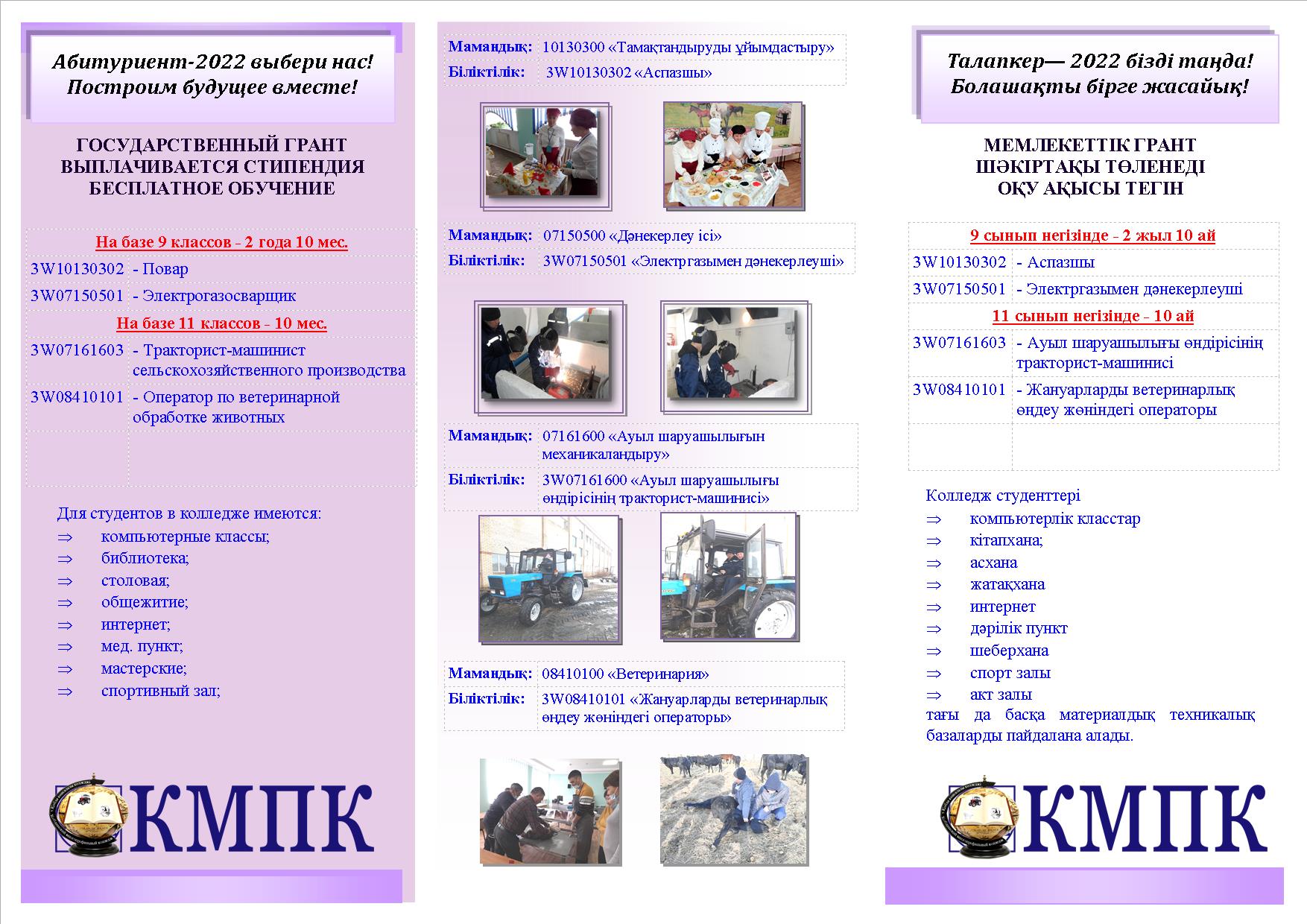 1513000 Ветеринария Біліктілігі: Мал шаруашылығында ветеринарлық өңдеуші операторы Оқу мерзімі: 10 ай. Оқыту тілі: орыс тілі