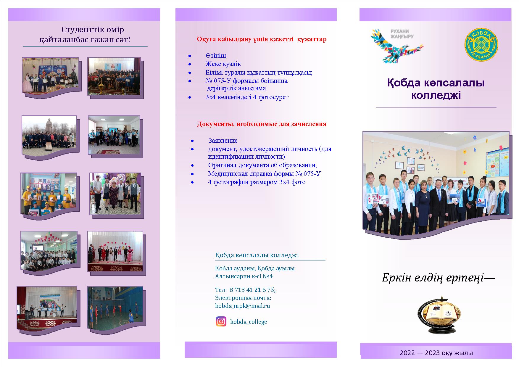 Қобда көпсалалы колледжі төмендегі мамандықтар бойынша
